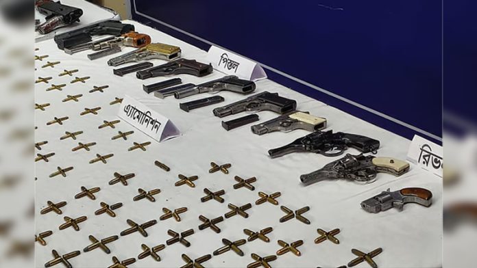 পুলিশ জানায়, গতকাল মেহেদী হাসানকে গ্রেপ্তারের সময় উত্তর বাড্ডার ওই বাড়ি থেকে অস্ত্র, গুলি ছাড়াও পিস্তলের ৮টি ম্যাগাজিন, ৩২টি কার্তুজ, একটি ২২ উজি মেশিনগান রাইফেল, উজি রাইফেলের দুটি ম্যাগাজিন, তিনটি চায়নিজ কুড়াল, একটি টাইগার হান্টিং কমান্ডো চাকু, দুটি ওয়াকিটকি, একটি ওয়াকিটকি ব্যাটারি, তিনটি পিস্তলের সাইড কভার ও একটি ল্যাপটপ উদ্ধার করা হয়েছে।