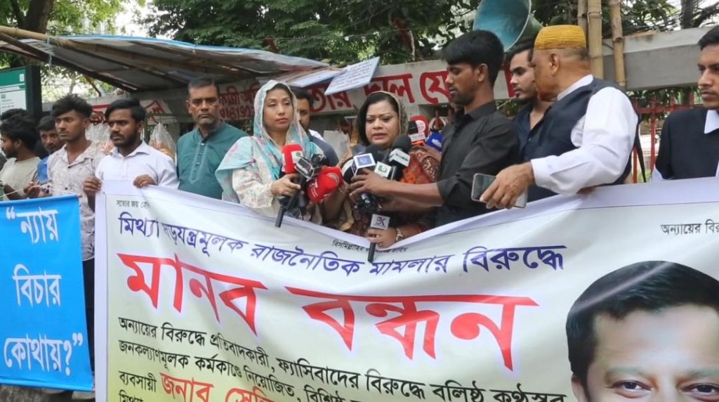 কারাবন্দি ব্যবসায়ী সেলিম প্রধানের নিঃশর্ত মুক্তির দাবিতে রাজধানীর জাতীয় প্রেসক্লাবের সামনে মানববন্ধন করেছেন তার পরিবার ও স্বজনরা। তারা অভিযোগ করেছেন, কোনো রাজনৈতিক সম্পৃক্ততা না থাকা সত্ত্বেও উদ্দেশ্যপ্রণোদিতভাবে বিগত আওয়ামী লীগ সরকারের আমলে তাকে গ্রেফতার করে ২২ কোটি টাকা বিদেশে পাচারের অভিযোগ এনে একের পর এক মামলায় জড়ানো হয়েছে। ওইসব মামলার মধ্যে একটি মামলায় বিগত সময়ে আদালত ৮ বছরের জেল দিয়ে তাকে কারাবন্দী করে রাখা হয়েছে।