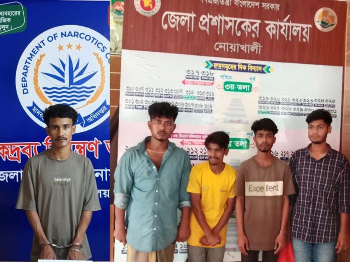 নোয়াখালী পৌরসভার দত্তেরহাট এলাকায় অভিযান চালিয়ে ইয়াবা ও গাঁজাসহ ৫ জনকে গ্রেফতার করেছে জেলা মাদকদ্রব্য নিয়ন্ত্রণ অধিদপ্তর (ডিএনসি)। এদের মধ্যে চারজনকে বিভিন্ন মেয়াদে বিনাশ্রম কারাদণ্ড ও অর্থদণ্ড প্রদান করে ভ্রাম্যমাণ আদালত।