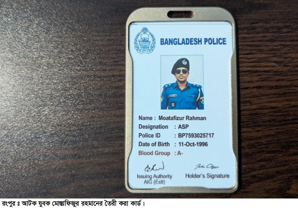 তিনি স্থানীয়দের বরাত দিয়ে জানান, দুপুরে রংপুর প্রেসক্লাবের আর.টি প্রেসে এসে সহকারী পুলিশ সুপারের একটি ভূয়া আইডি কার্ড বানান মোস্তাফিজুর। এনিয়ে দোকান কর্মচারীদের সন্দেহ হলে তারা প্রেসক্লাব এলাকায় থাকা পুলিশকে জানায়।