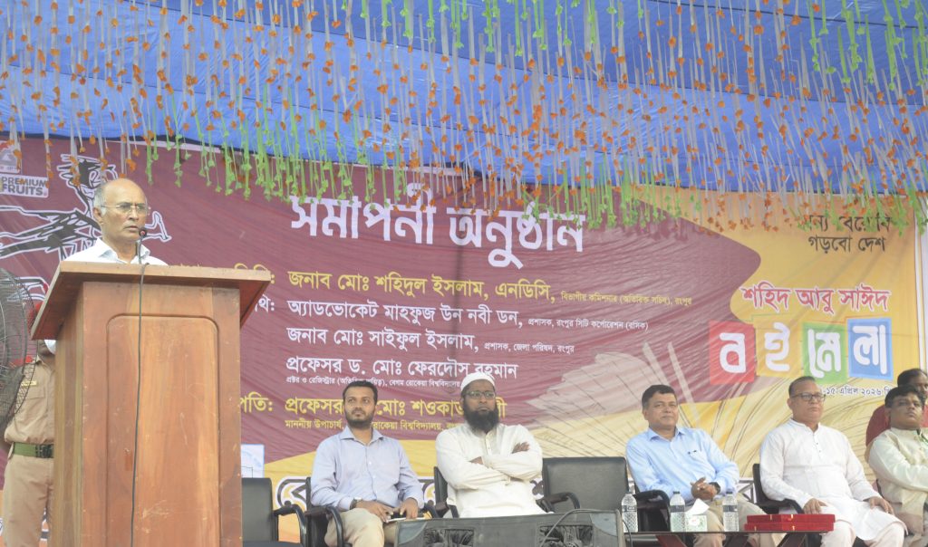 রংপুরে বেগম রোকেয়া বিশ্ববিদ্যালয়ে চার দিন ব্যাপি ‘শহিদ আবু সাঈদ বইমেলা’ বুধবার সমাপ্ত হয়েছে। বিকালে বিশ্ববিদ্যালয় প্রশাসনের উদ্যোগে আয়োজিত সমাপনী অনুষ্ঠানে প্রধান অতিথি হিসেবে উপস্থিত ছিলেন রংপুর বিভাগীয় কমিশনার মোঃ শহিদুল ইসলাম।