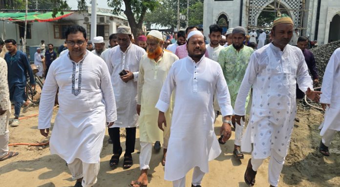 পবিত্র জুমার দিন শুক্রবার (২৪ এপ্রিল) হযরত শাহ মখদুম রূপোস (রহ.) দরগা মসজিদে জুমার নামাজ আদায় শেষে নির্মাণাধীন মসজিদ ও মাজার কমপ্লেক্সের চলমান উন্নয়ন কাজ পরিদর্শন এবং মুসল্লিদের সঙ্গে সৌহার্দ্যপূর্ণ কুশল বিনিময় করেছেন করেন রাজশাহী সিটি কর্পোরেশনের (রাসিক) প্রশাসক মোঃ মাহফুজুর রহমান রিটন।